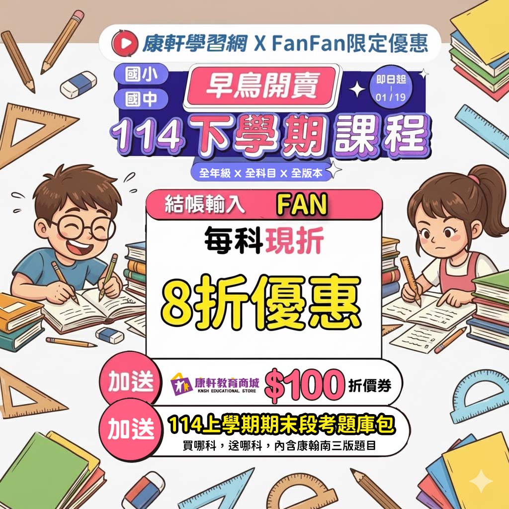 ⚡️康軒學習網|輸入折扣碼FAN享8折優惠,再贈段考題庫包!